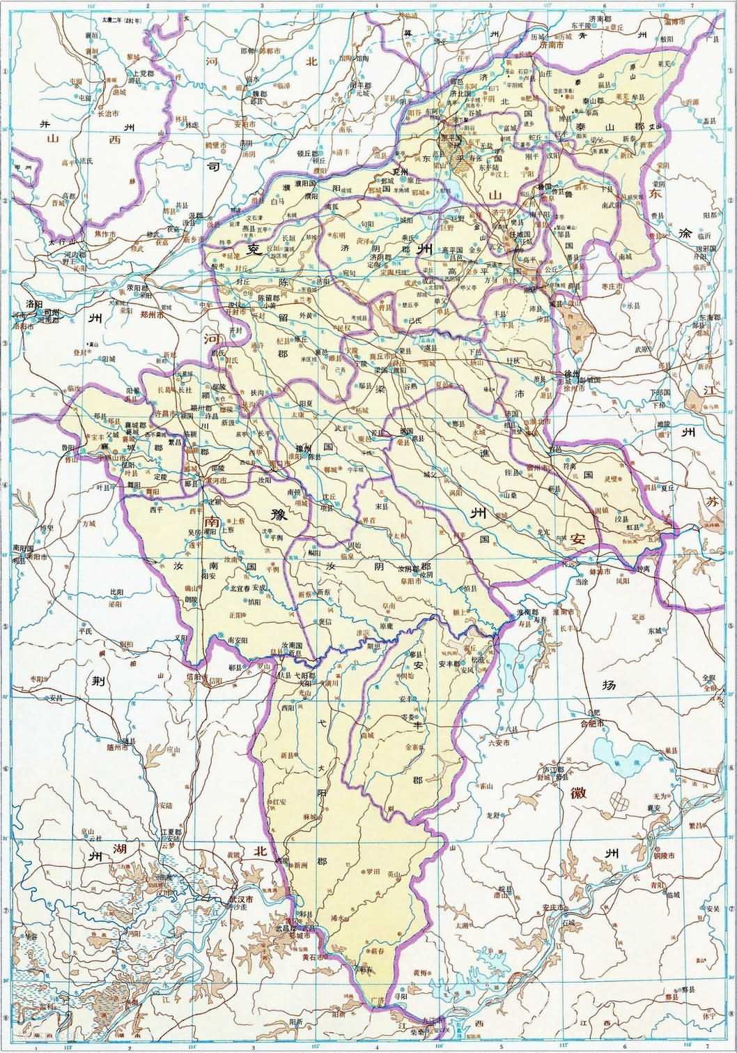 西晋兖州、豫州地图全图 2021年11月5日 下载 ⭐ 收藏文章 我的收藏 西晋兖州、豫州地图全图高清版 晋时,设兖州刺史部,辖濮阳国、东平国、济北国、泰山郡、陈留郡、济阴郡、任城国、高平国(治昌邑,辖瑕丘、金乡、巨野等)八郡国五十六县。 三国的曹魏时期,豫州的治所在安城,下辖颍川郡、陈郡、鲁郡、汝南郡、谯郡、弋阳郡、阳安郡、襄城郡、汝阴郡9郡,以及梁国、沛国2国。 西晋时期,豫州治所在陈县(今河南淮阳),下辖10个郡国。 ⭐ 收藏文章 我的收藏 分类:历史地图集 标签: 相关推荐 江西九江老照片大全 中国在原始社会黄河流域晚期遗址地图 中国原始社会遗址分布图 夏朝地图全图高清版 西晋雍州、秦州地图全图 东晋与北方诸国形势地图(405-418年) 查看更多相关推荐