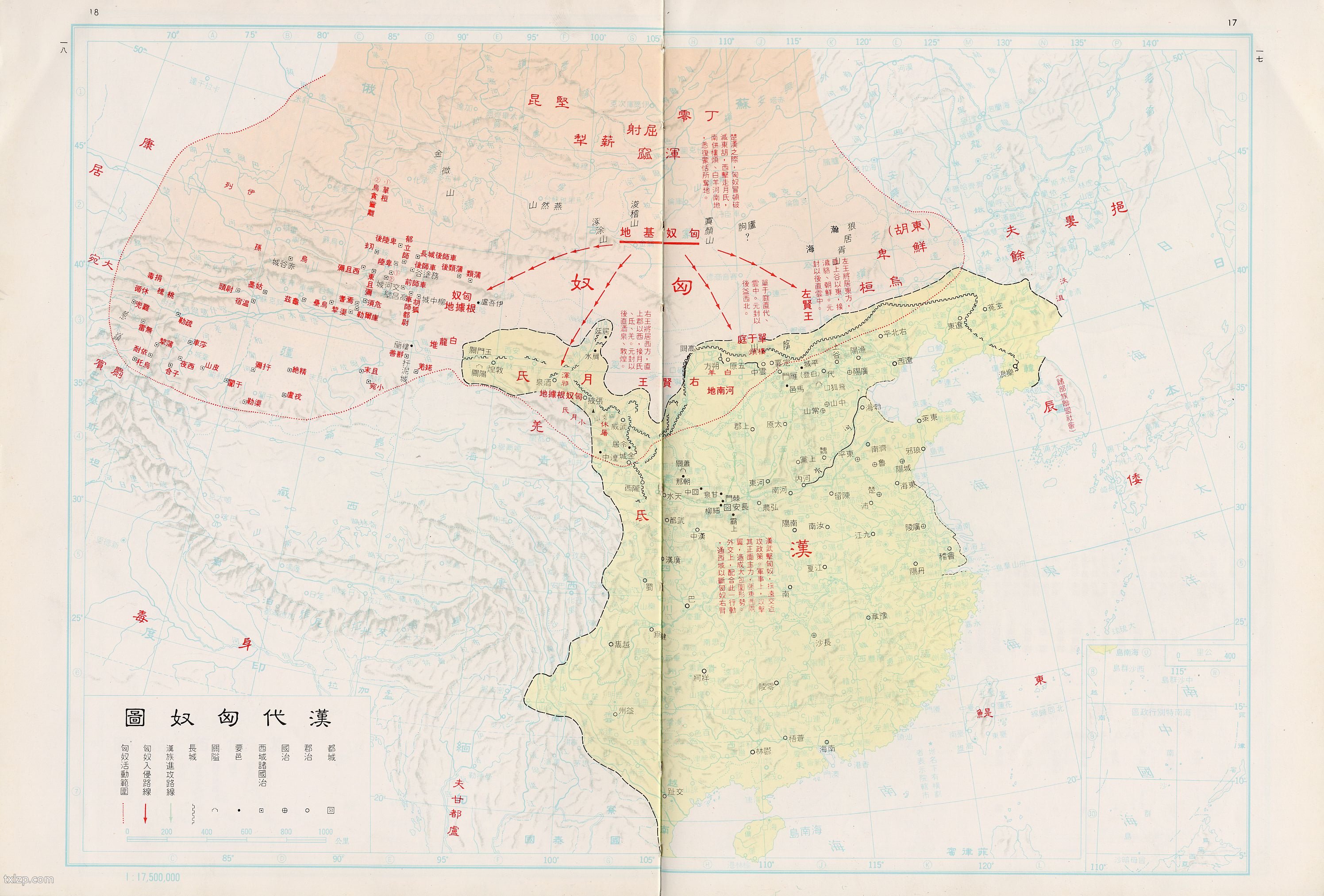 该《汉代匈奴图》出自台湾中国文化大学出版的中国历史地图,仅供参考。