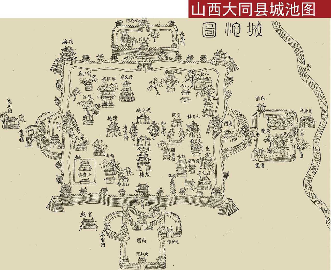 1830年《大同县城池图》 2022年11月6日 下载 ⭐ 收藏文章 我的收藏 此《大同县城池图》为清道光十年(1830年)绘制的大同县城简略城市地图,出自地方志数目。 本图没有超大图,但字迹基本能看清,请右键另存为保存。 地图查看: 请点击图片放大查看。 1937年《大同市要图》 ⭐ 收藏文章 我的收藏 分类:清代, 陕西 标签:大同 相关推荐 1937年大同老照片 民国时期大同街景|华严寺 民国明信片上的大同云冈石窟影像 山西大同历史地图大全 1937年《大同市要图》 查看更多相关推荐