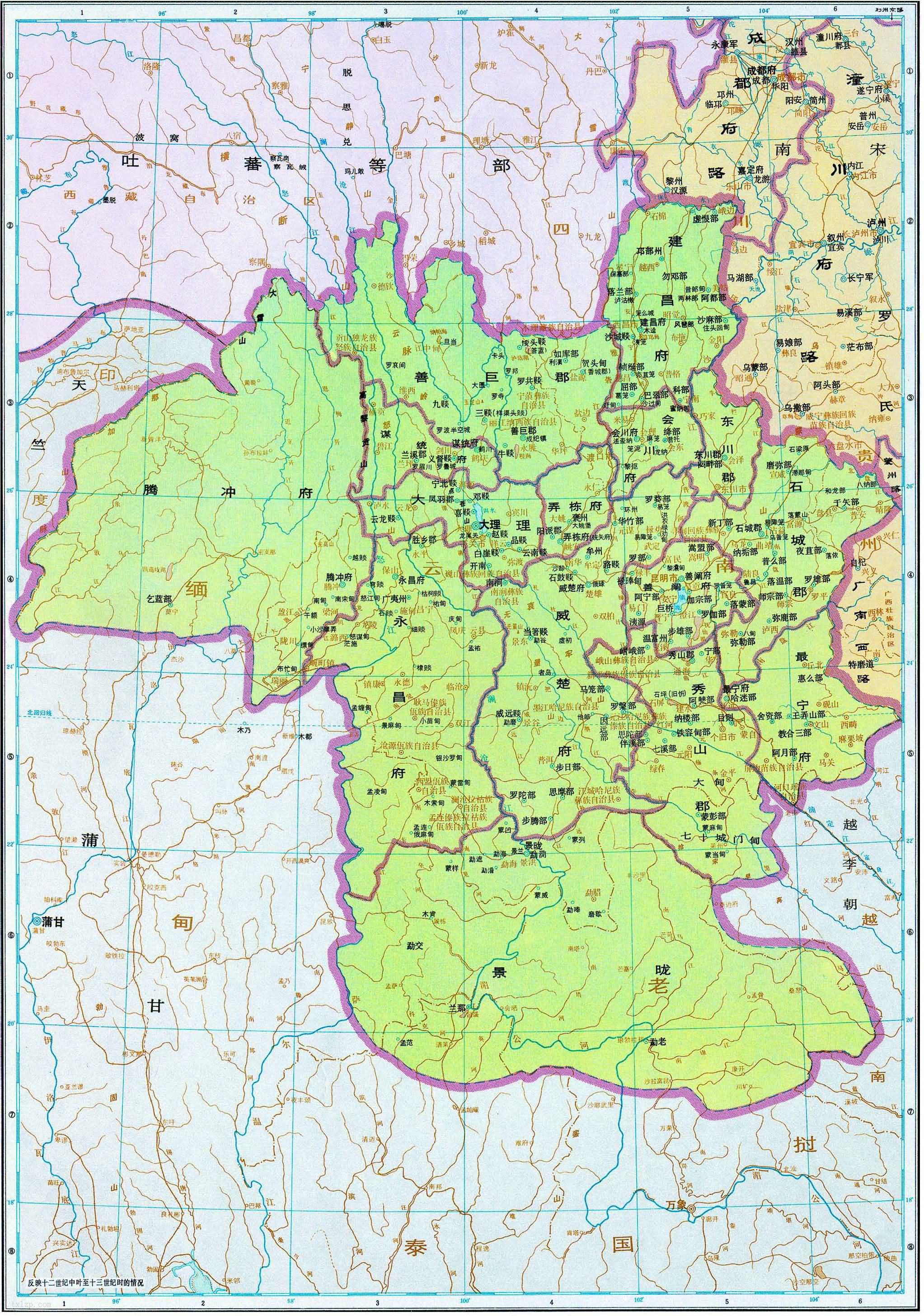 南宋 大理国地图 2021年11月5日 下载 ⭐ 收藏文章 我的收藏 南宋时期 大理 历史地图全图高清版 大理国政区与南诏相当,东至普安路之横山(今贵州普安),西至缅甸之江头城(今缅甸杰沙),南至临安路之鹿沧江(今越南莱州北部的黑河),北至罗罗斯之大渡河,相当于今天云南省面积的2.9倍。 ⭐ 收藏文章 我的收藏 分类:云南, 宋代 标签: 相关推荐 1944年昆明老照片 李约瑟拍摄的昆明西山(下) 1944年昆明老照片 李约瑟拍摄的昆明西山(上) 《滇越铁路》1910年 影集下载 《威尔克斯的中国摄影集》1945-1946年 影集下载 1943-1946年 《李约瑟的中国摄影集》全套图集 云南楚雄历史地图大全 查看更多相关推荐