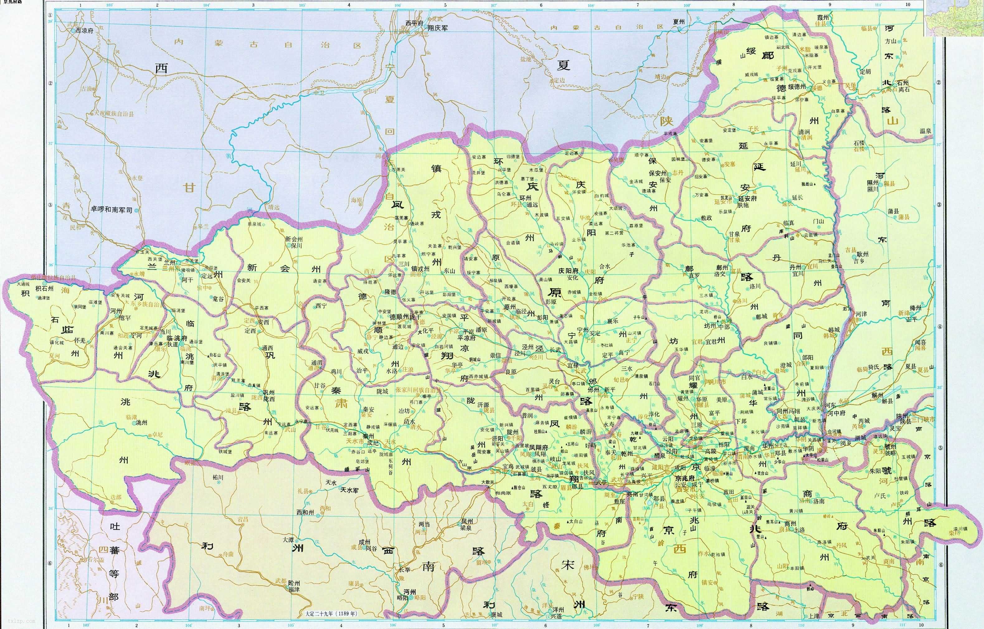 宋金时期 京兆府路 凤翔路 鄜延路 庆原路 临洮路地图全图高清版