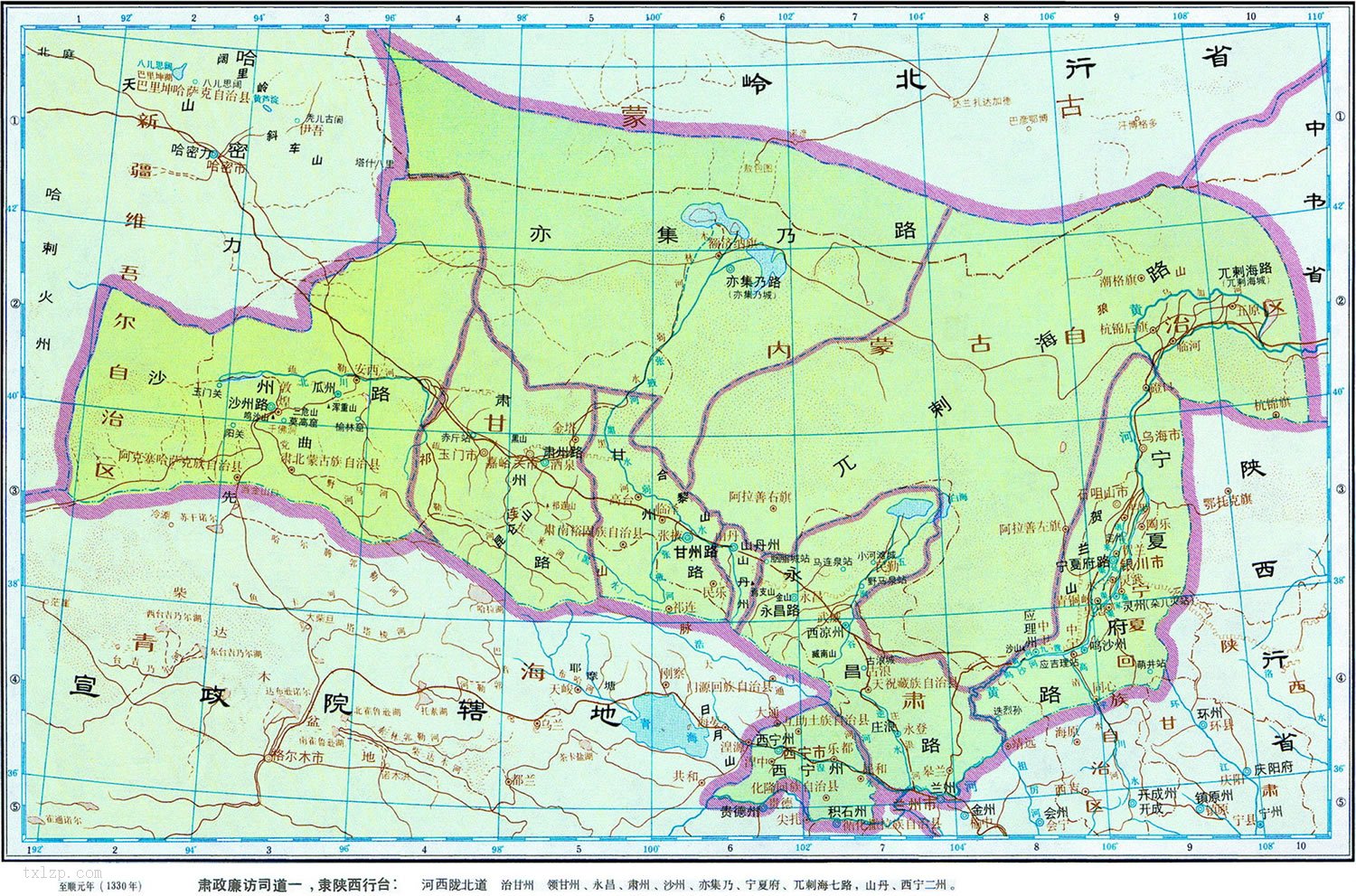 元朝时期的甘肃行省地图 2021年11月5日 下载 ⭐ 收藏文章 我的收藏 元代统一天下之后,先后设立了中书省及十一个行中书省,其中甘肃行省(治甘州路,今甘肃张掖县),辖今甘肃西部、宁夏北部、内蒙古西部、新疆东部和青海湟源以东地区。 (请点击图片查看大图) ⭐ 收藏文章 我的收藏 分类:元代 标签:甘肃省图 相关推荐 甘肃省历史地图大全 1947年《甘肃省地形图》五万分一 明嘉靖时期《甘肃镇战守图略》 民国《甘宁青三省分县新图》 1926年《甘肃省图》 1855–1871年《甘肃舆图》 查看更多相关推荐