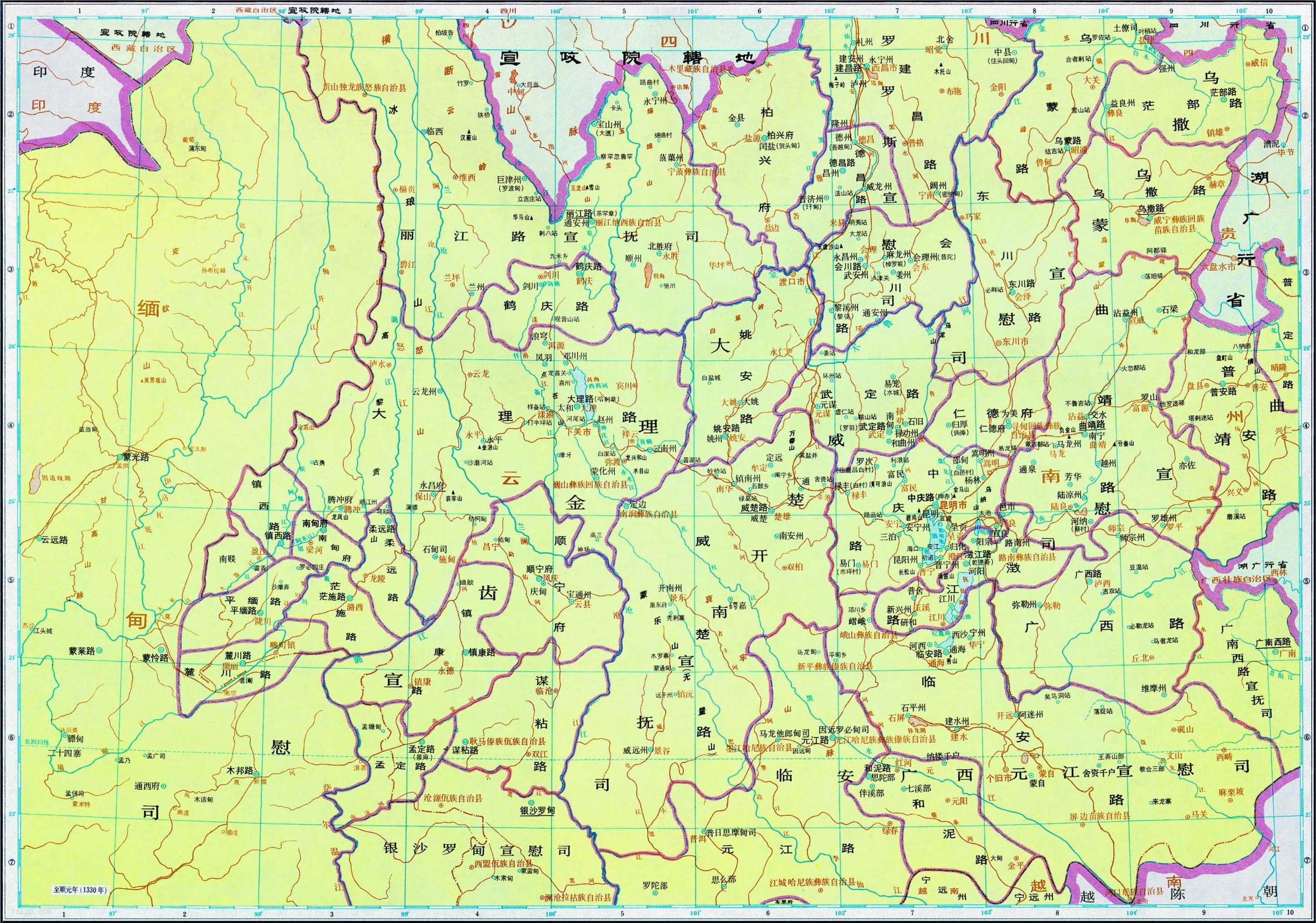 元代 云南行省中部地图 2021年11月5日 下载 ⭐ 收藏文章 我的收藏 元代 云南行省中部地图全图高清版 云南行中书省为元朝中国本部的10个行中书省(不含征东行省等)之一,辖境包括今云南全部、贵州南部、四川东部,广西西部以及泰国、缅甸北部一些地方等,西与四川等处行中书省 接壤。统有三十七路、五府。 中部地区主要为今天的云南大部、贵州南部,广西西部地区 ⭐ 收藏文章 我的收藏 分类:云南, 元代 标签:云南省图 相关推荐 云南省历史地图大全 1917年《云南省》地图 1945年《云南省明细地图》 1943年《云南省地形图》五万分一 1918年《云南全省新舆图》 1905年《云南省》地图 查看更多相关推荐