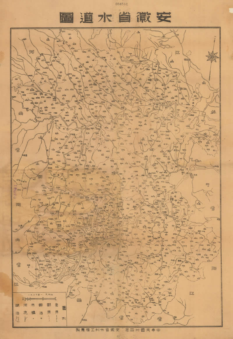 1945年《安徽省水道图》JPG超高清版,文件大小:7.71M,地图大小:7071*10175像素