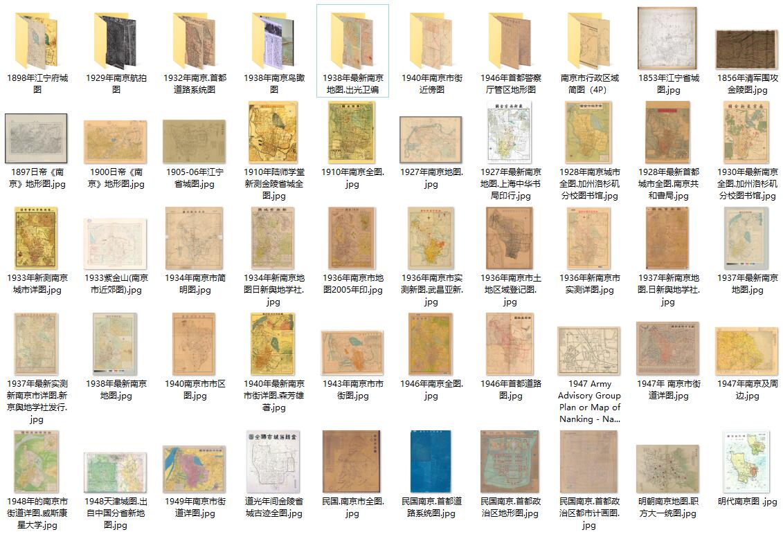 本南京地图资源包文件大小共1.31G,68张图片,单幅地图JPG图片大小普遍在10000像素及以上,地图上的图形及字迹清晰易辨认,非常适合研究。