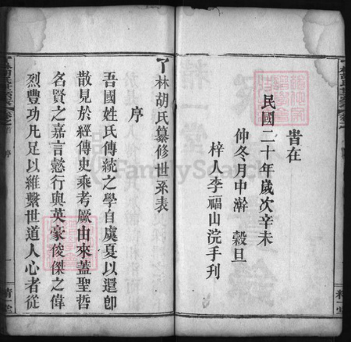 湖北省黄冈市红安县杏花乡胡氏族谱-了林胡氏世系表 [4卷, 首2卷]网盘下载
