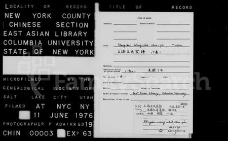 中国, 江苏省, 上海县 – 族谱