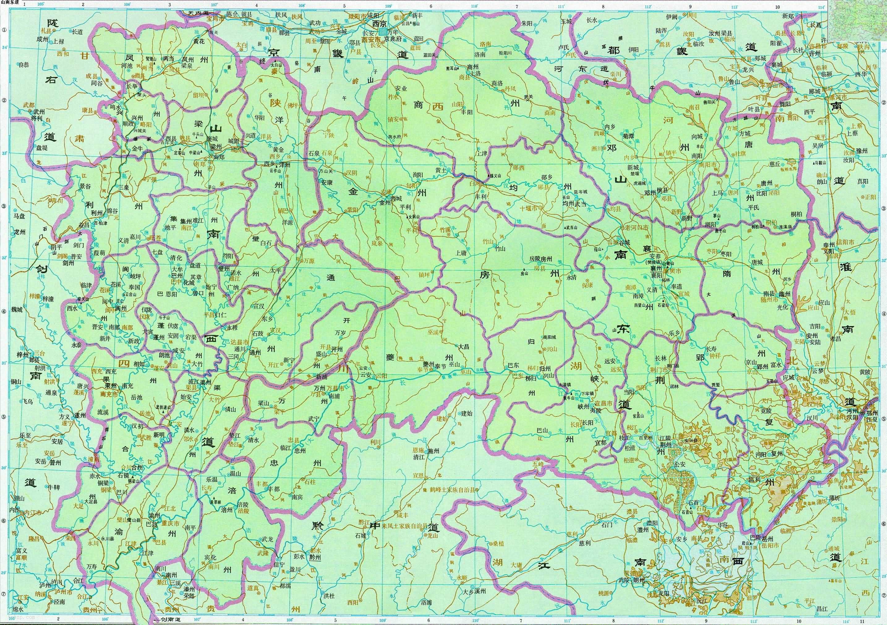 唐朝 山南东道 山南西道 历史地图全图高清版