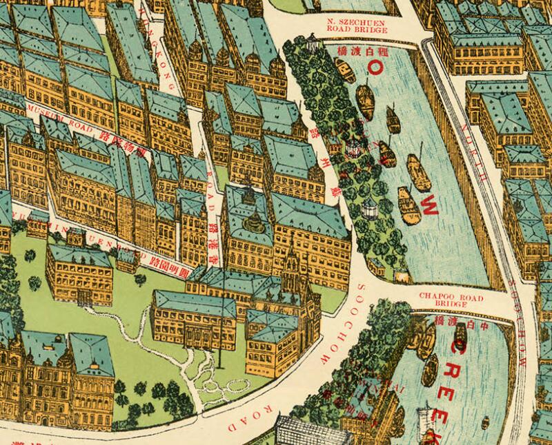 此《上海商场指掌图》为1915发布的上海手绘地图,上海远东地理学会出版,威斯康星大学密尔沃基分校图书馆藏 ​​​​。