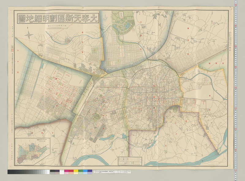 《大奉天新区划明细地图》为彩色版地图,制作精美,地图左下附奉天行政区划图,难得的沈阳老地图资料。