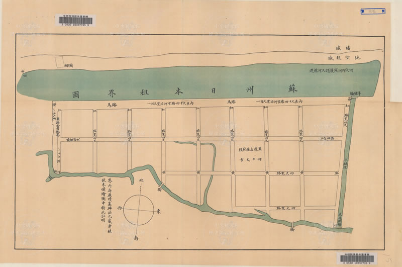 此《苏州日本租界图》为民国20年)(1931年)绘制的苏州城的日本租界地图,编绘者未知,发行人未知,原图为42×63公分石印本,现藏中研院。