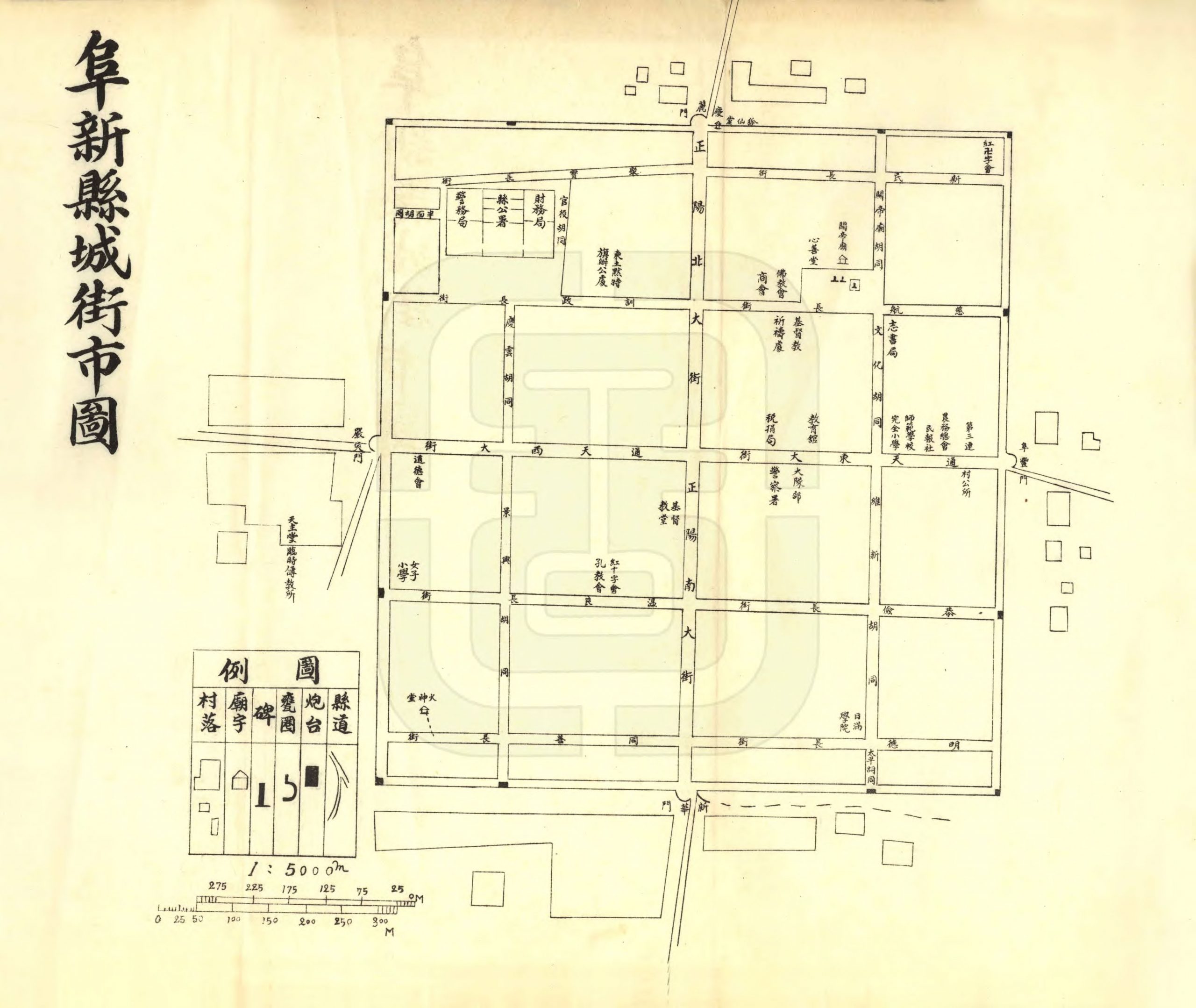 1935年辽宁《阜新县城街市图》 Leave a comment 此《阜新县城街市图》出自1935年发行的《阜新县志》中的附图,主要绘制的是辽宁阜新的县城市街简略地图。地图比例尺为:1/5000,地图大小:3830*3235像素,本图出自国图。 阜新蒙古族自治县,俗称蒙古贞 ,辽宁省阜新市辖县,位于辽宁省西北部、阜新市中北部,毗邻8个县(市)、旗,地处科尔沁沙地南缘。 地图全览: 请点击上图以大图方式查看,下载请右键另存为。 Category: 民国地图, 辽宁 Tags: 阜新
