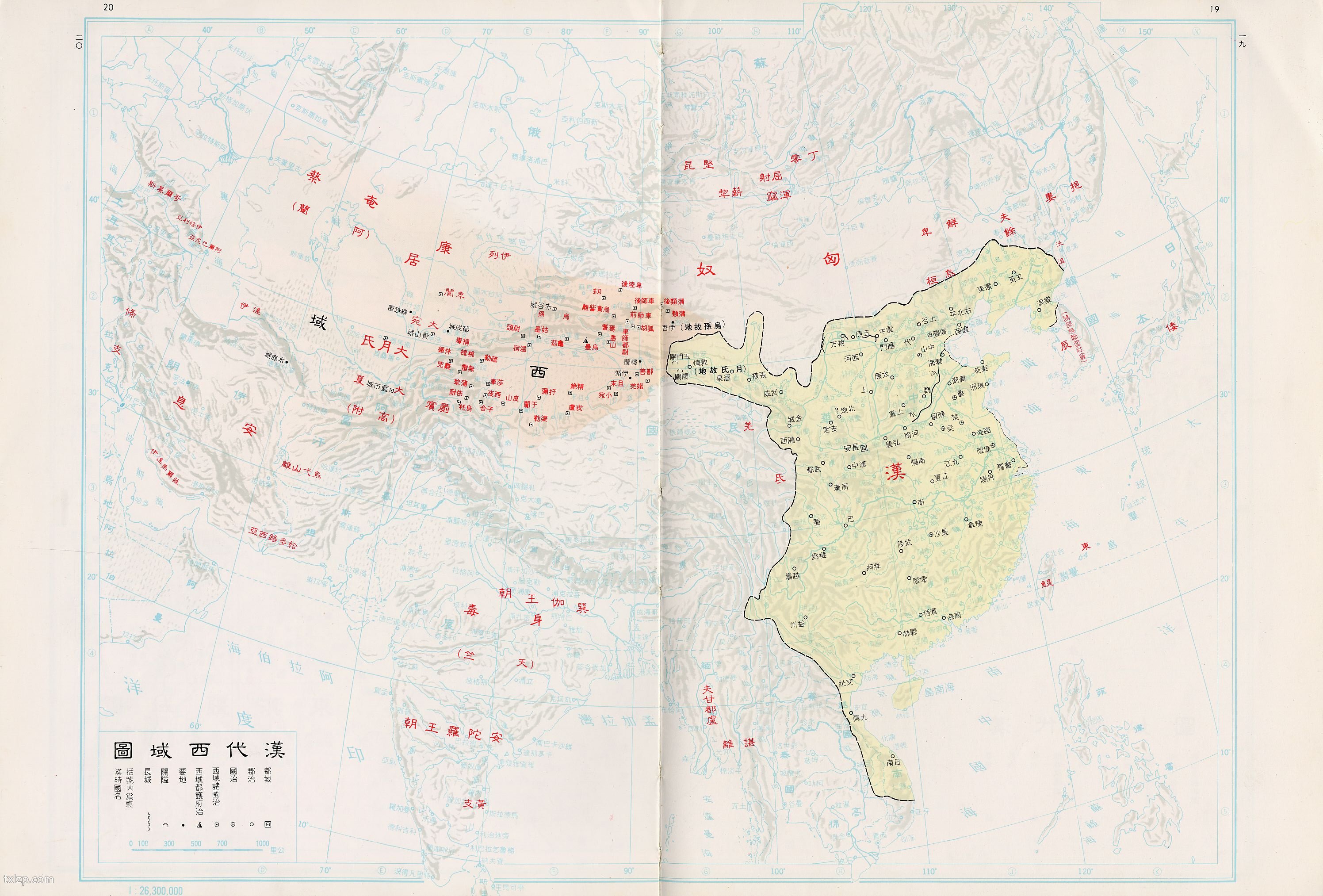 汉代(西汉)时期的西域形势地图。该《汉代西域图》出自台湾中国文化大学出版的中国历史地图,仅供参考。