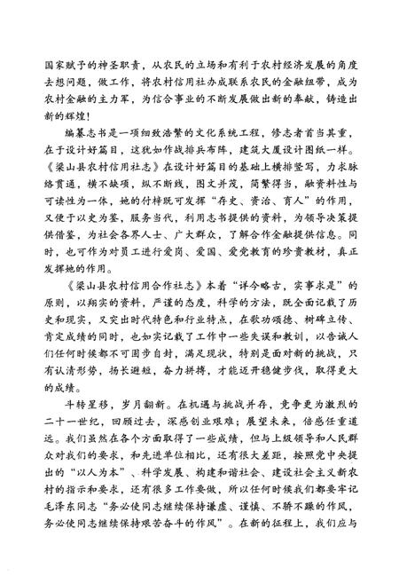 纵述1951年以来梁山县农村信用合作系统大事要事;不分章节。卷首设反映