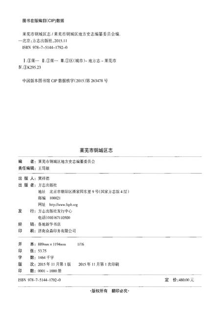 编纂单位:莱芜市钢城区地方史志编纂委员会