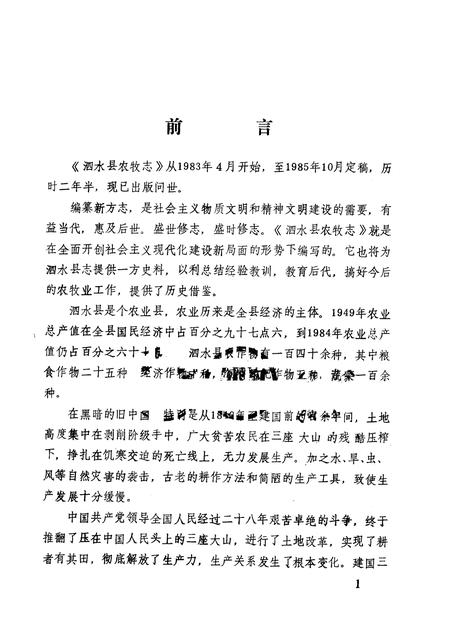 内容简介:《泗水县农牧志》从1983年4月开始,至1985年10月定稿,历时二年半,现已出版问世。编纂新方志,是社会主义物质文明和精神文明建设的需要,有益当代,惠及后世。盛世修志,盛时修志。《泗水县农牧志》就是在全面开创社会主义现代化建设新局面的形势下编写的。它也将为泗水县志提供一方史料,以利总结经验教训,教育后代,搞好今后的农牧业工作,提供了历史借鉴。