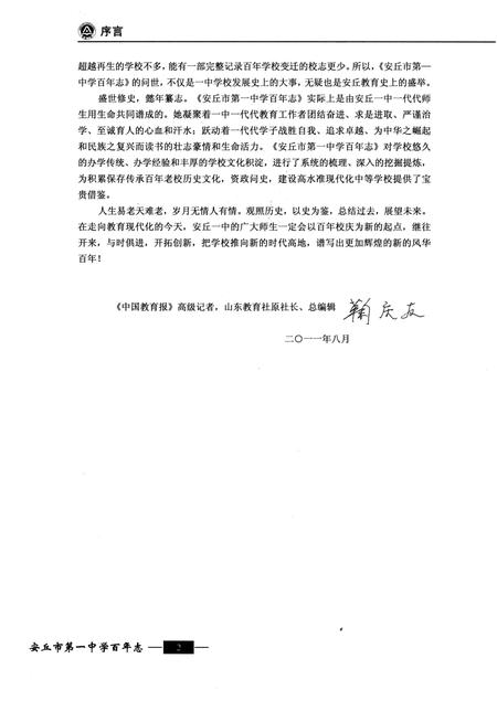 编纂单位:安丘市第一中学百年志编纂委员会编