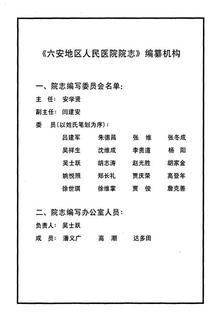 编纂单位:六安地区人民医院院志编委会