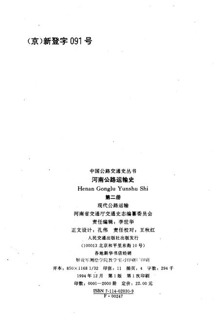 领导下由各有关单位编撰的,由人民交通出版社出版,公开发行。
