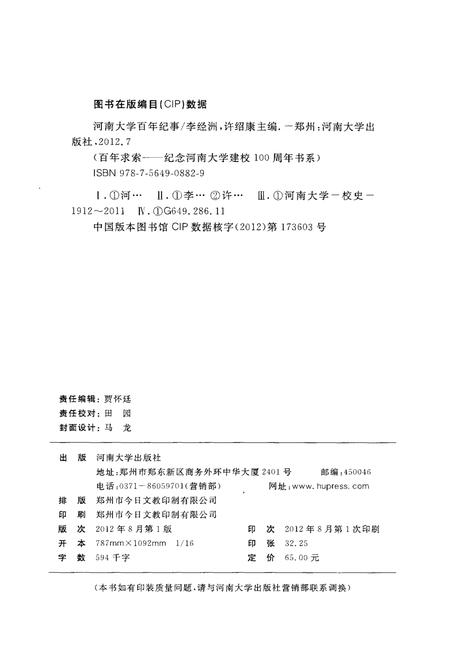 《河南大学百年纪事》(1912~2011)是为纪念河南大学建校100周年而