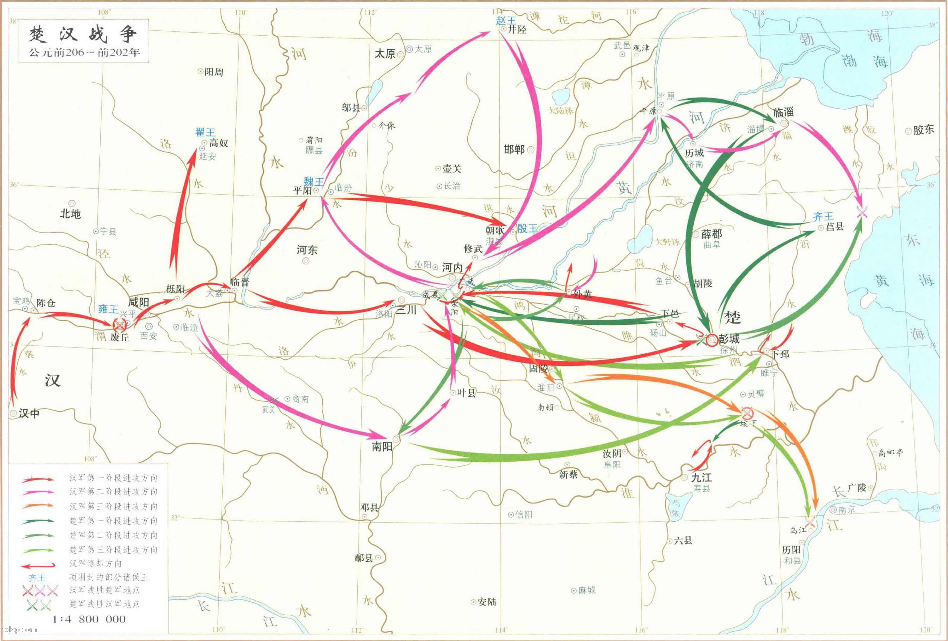 楚汉战争:汉王元年至汉王五年(公元前206年至前202年),西楚霸王项羽与汉王刘邦,为争夺全国统治权而进行的战争。