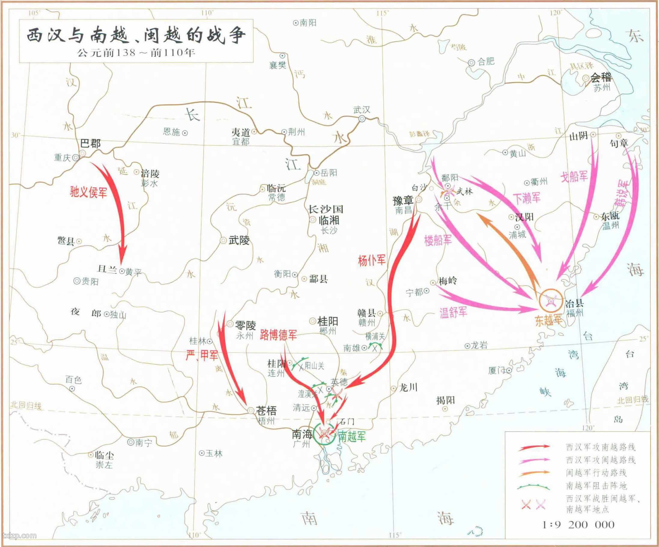 驰义候被阻于且兰(今贵州黄平一带),戈船、下瀚军未至,南越已平。