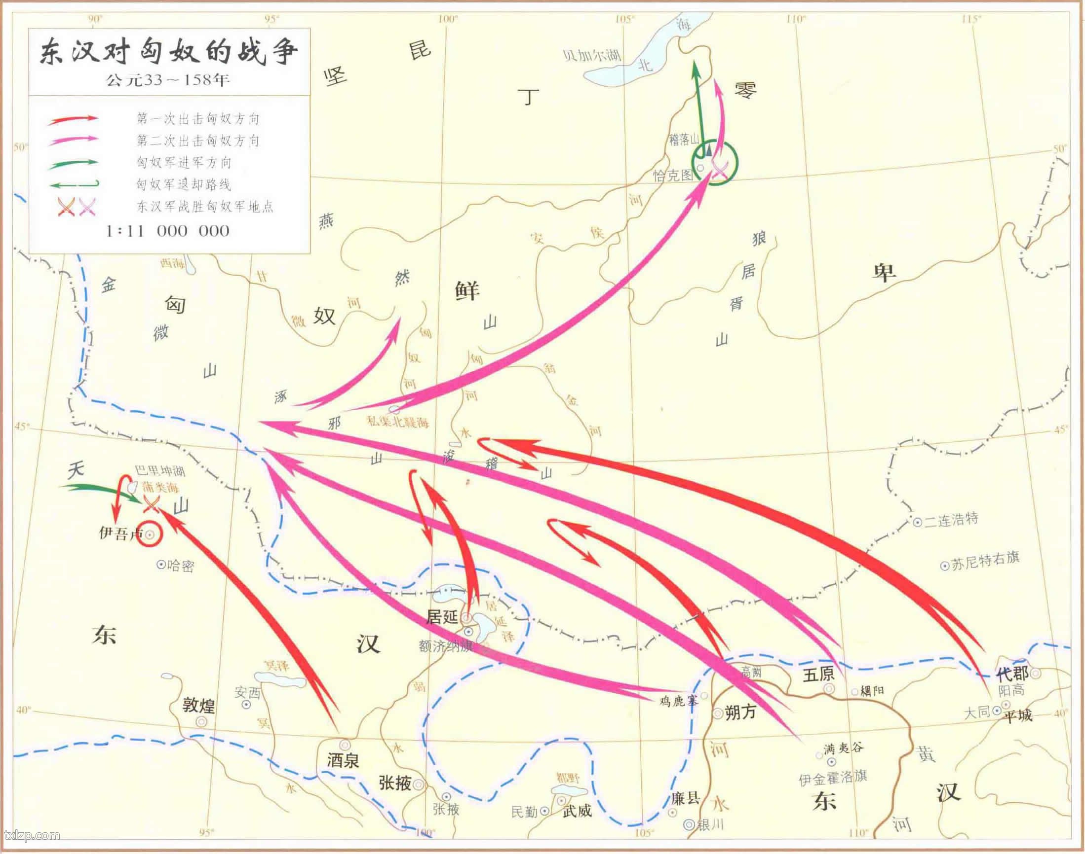 东汉对匈奴的战争地图 公元33-158年
